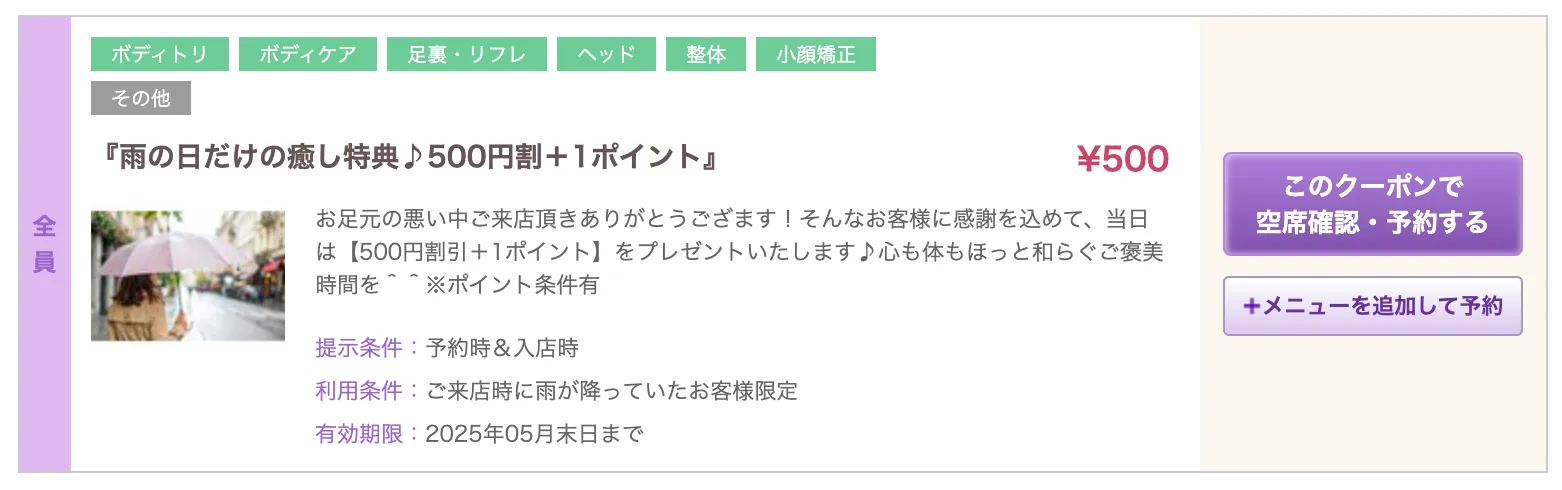 そこで、『雨の日割クーポン』というものを作りました!